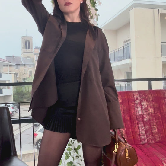 Adoptez cette chemise marron oversize, parfaite pour un look décontracté et moderne. Sa coupe longue, arrivant juste en dessous des fesses, assure confort et liberté de mouvement tout en restant stylée.