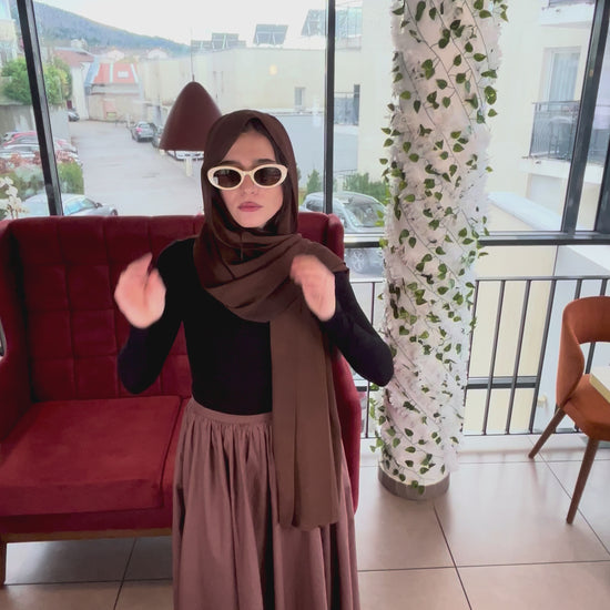 Sublimez votre silhouette avec cette jupe marron longue à double épaisseur, pour un effet léger et élégant à chaque pas. Parfaite pour un look chic et confortable au quotidien.
