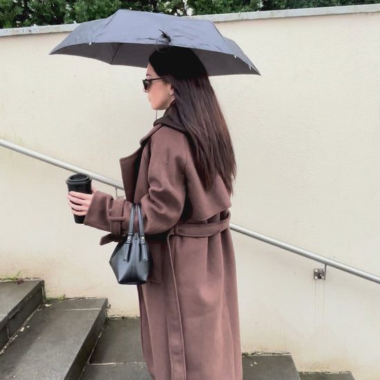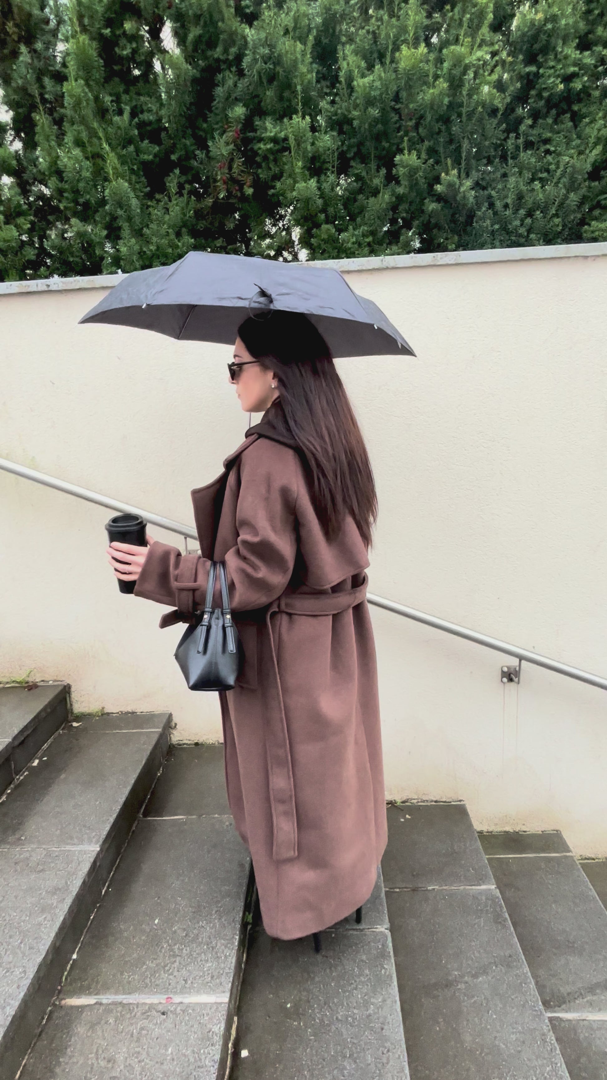 Ce manteau marron, élégant et polyvalent, est parfait pour sublimer vos tenues d’automne et d’hiver. Sa ceinture permet de définir joliment la taille, offrant une silhouette féminine et raffinée. Un indispensable pour un look sophistiqué au quotidien.
