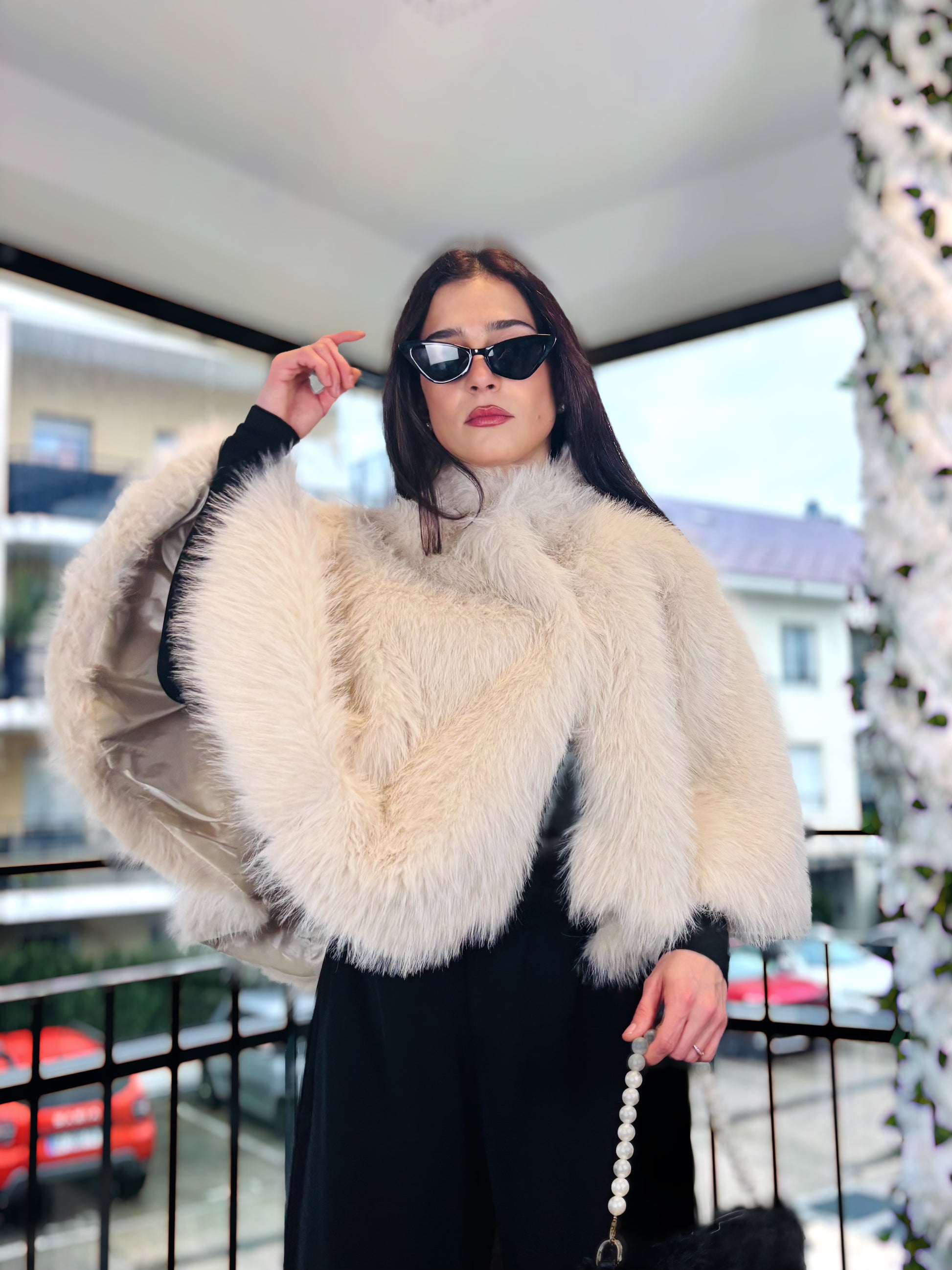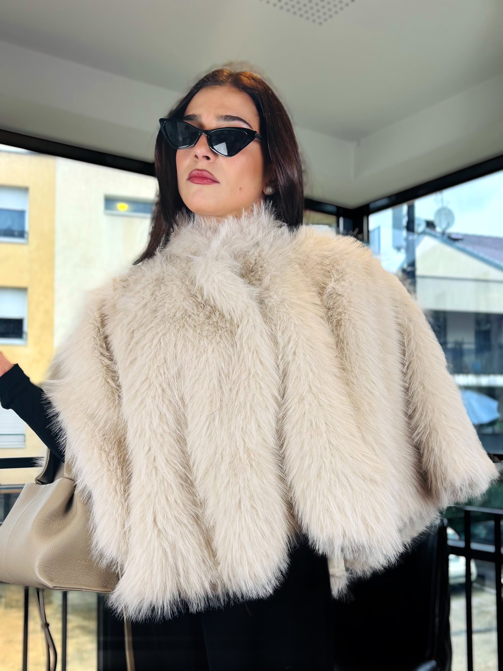 Pancho à Fourrure Beige – Douceur & Élégance
